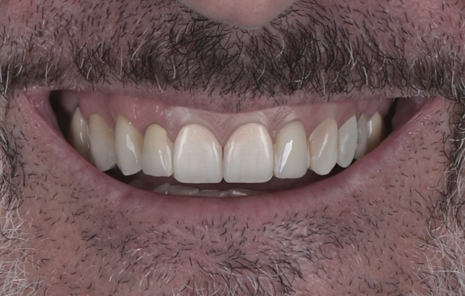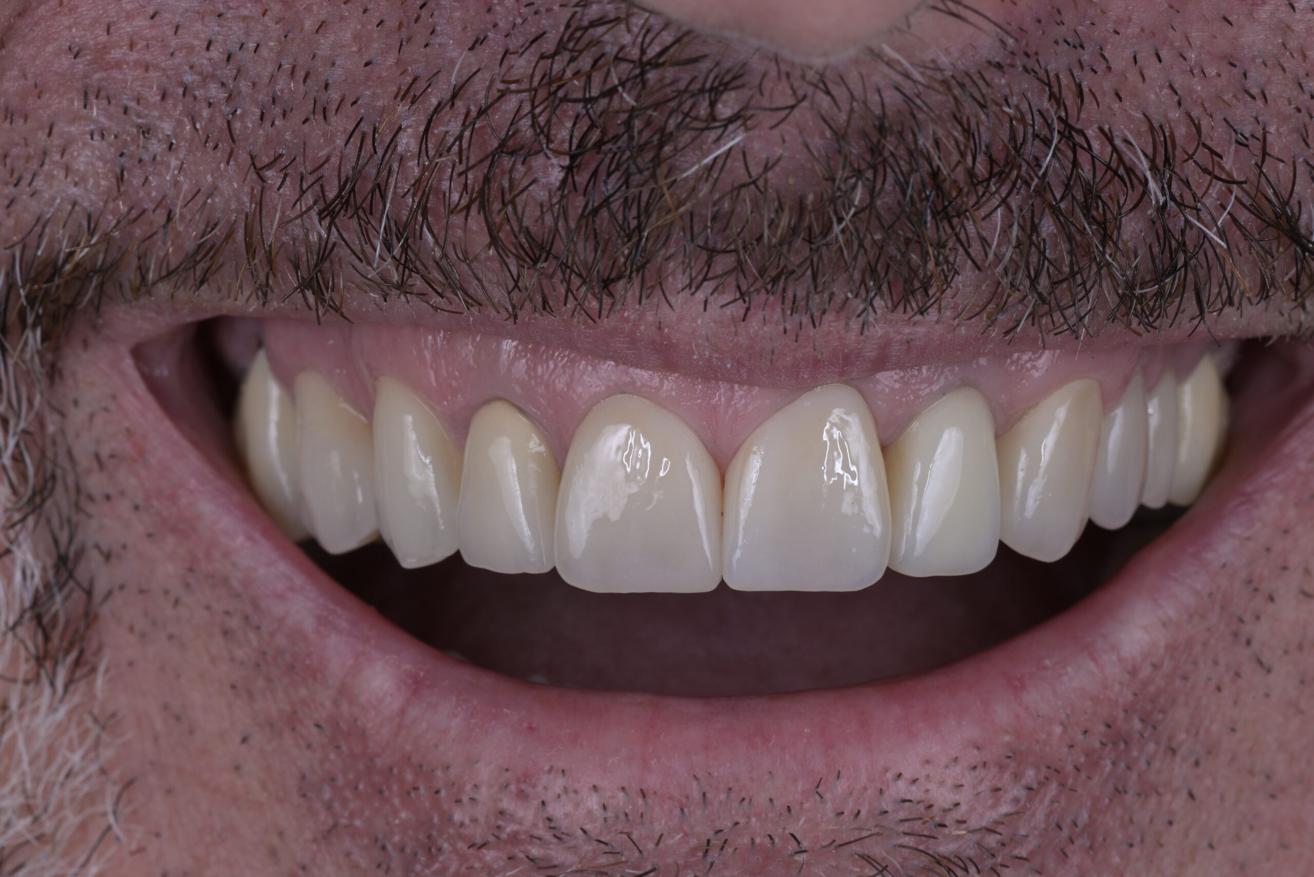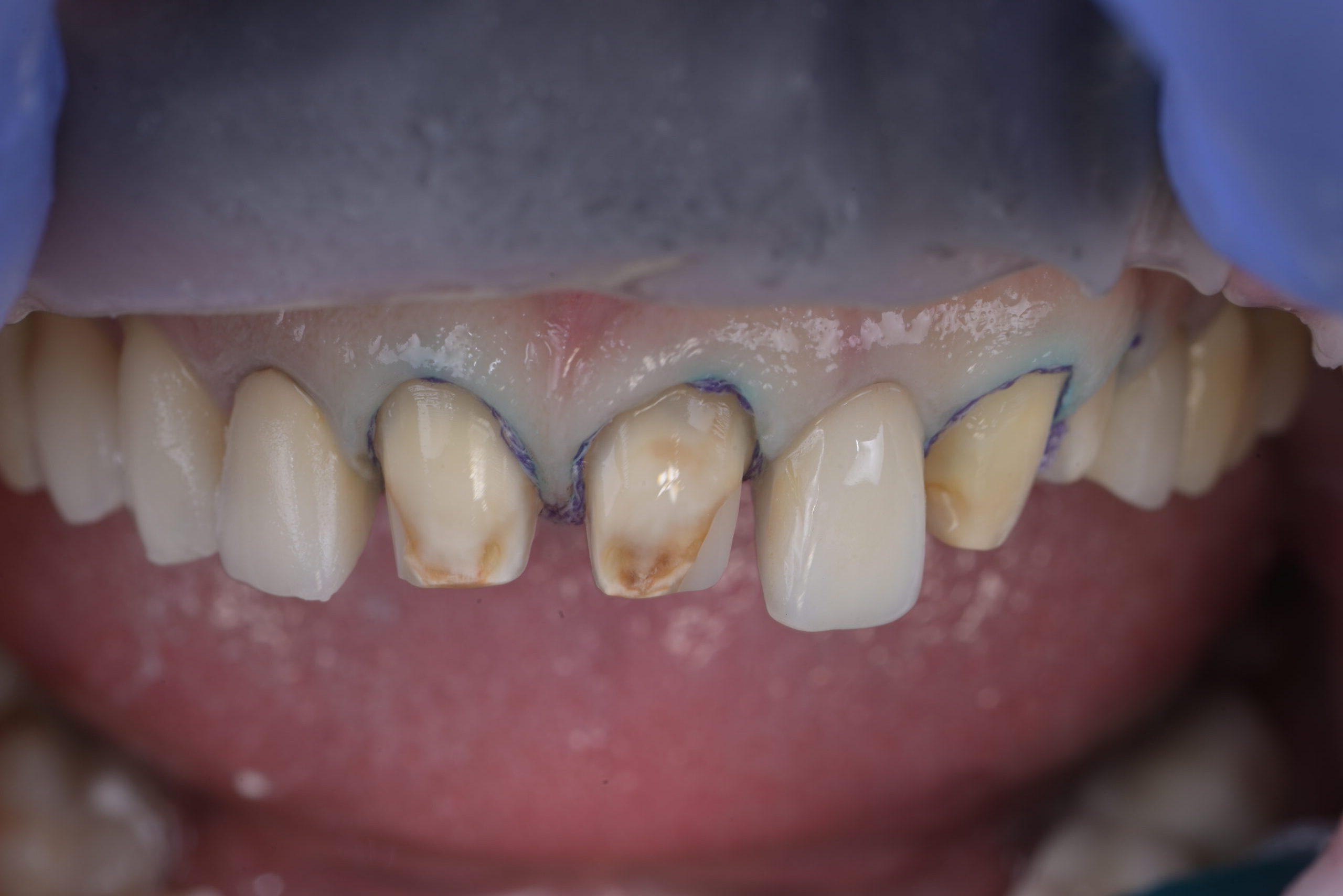 - Four crowns were prepared using a practical “everyday” approach — generic but controlled, designed to allow an efficient transition into a definitive prosthetic outcome.