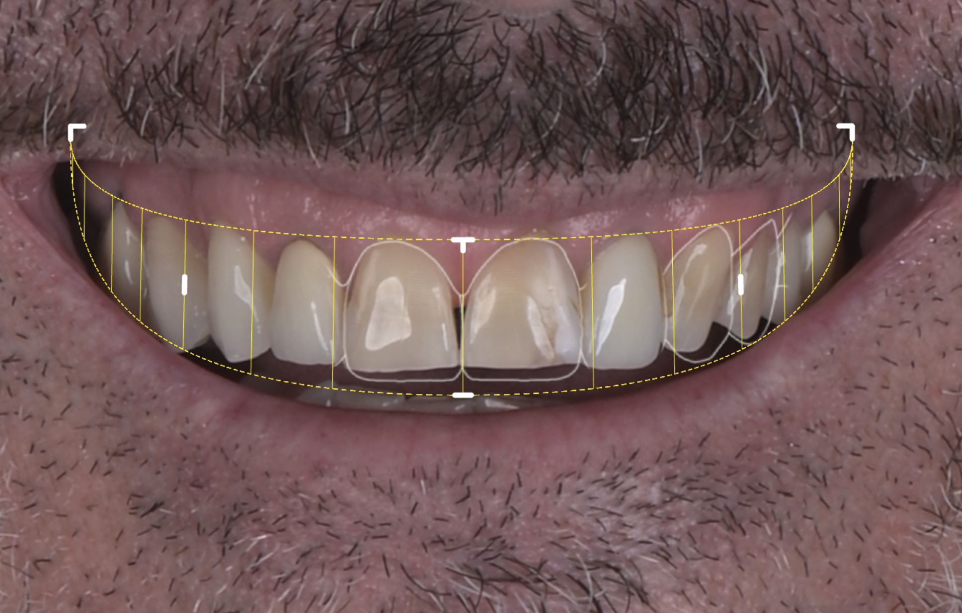 Decision-making: I’m always using a single photo with a full smile in a neutral head position and by using the grid, a smilecloud Smile design feature I decide which teeth need to be corrected to improve the smile line and the overall esthetics.