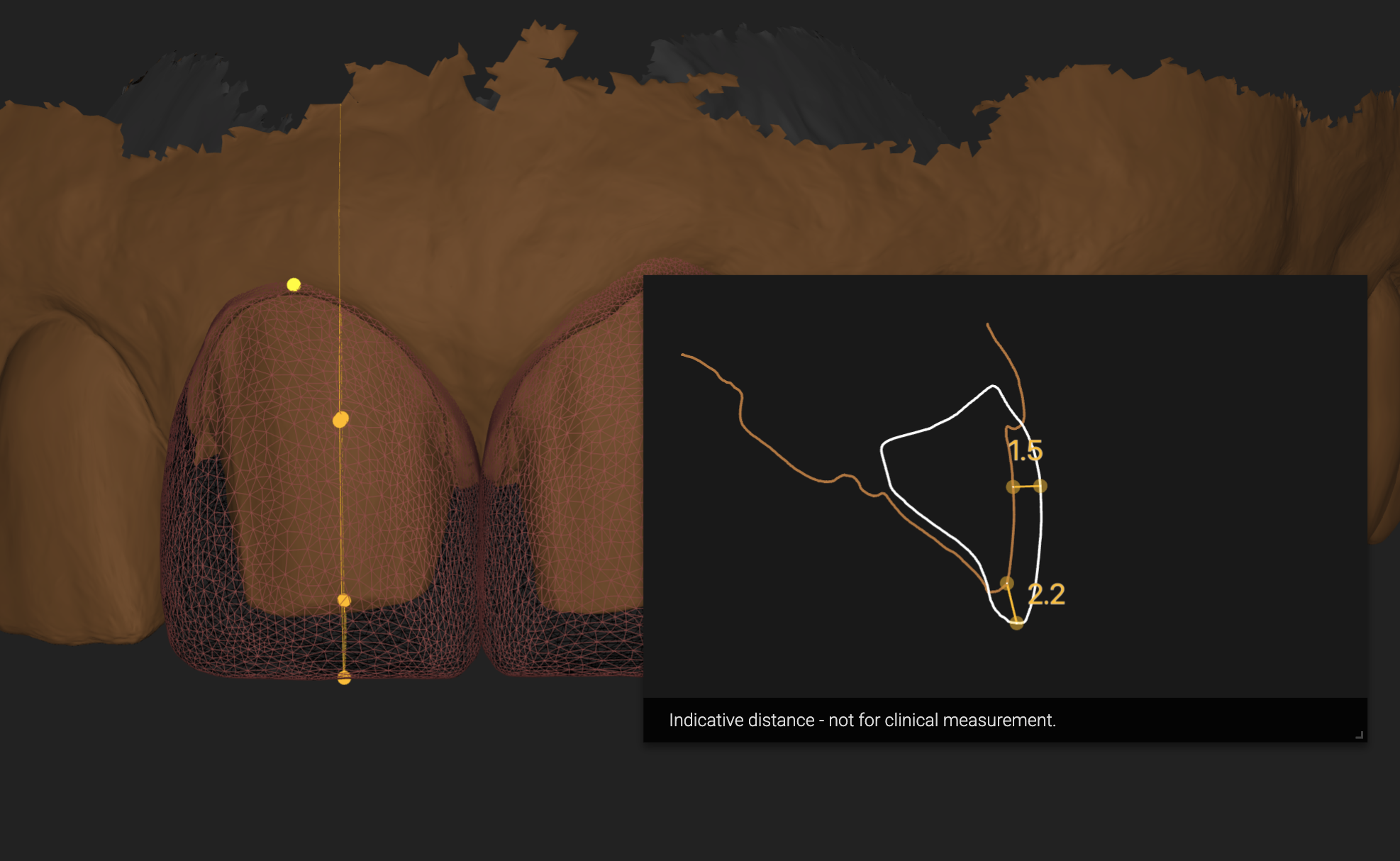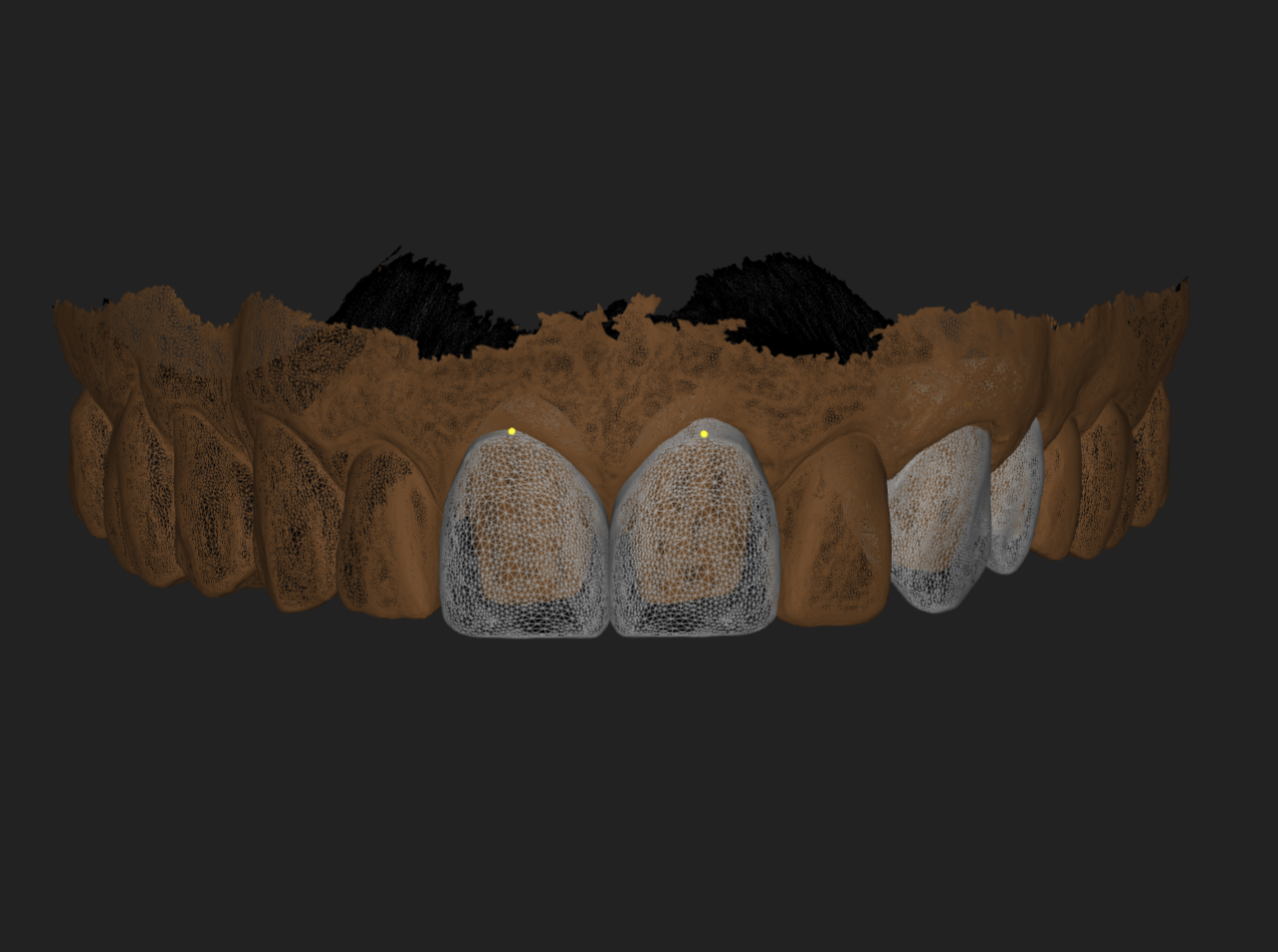 - The earlier 2D design was applied and refined in 3D on the selected teeth only.