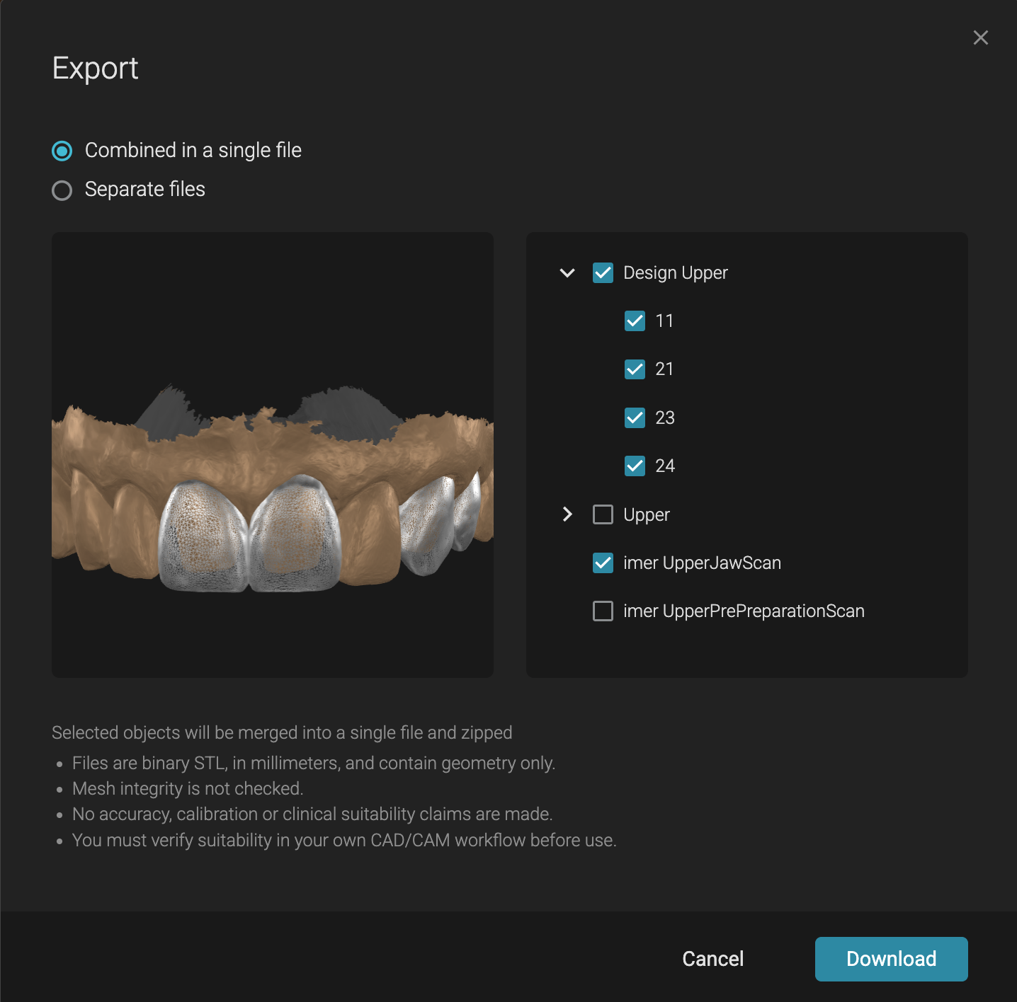 Deliverable to the lab: A 3D plan that combines facial orientation + restorative target shapes + real prep geometry in one package.